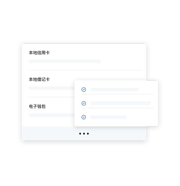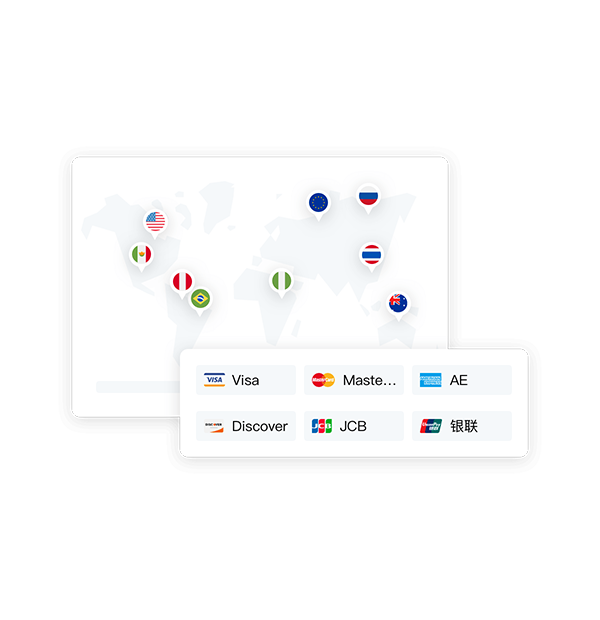 支持 Visa、Mastercard、AE、Discover、JCB、银联等 6 大国际信用卡和全球 100+ 国家和地区的数百种本地支付方式,让出海支付更简单